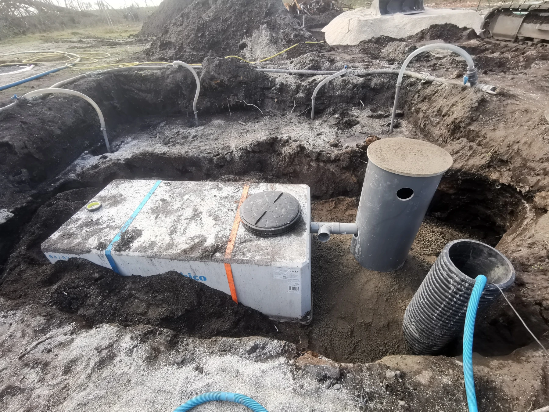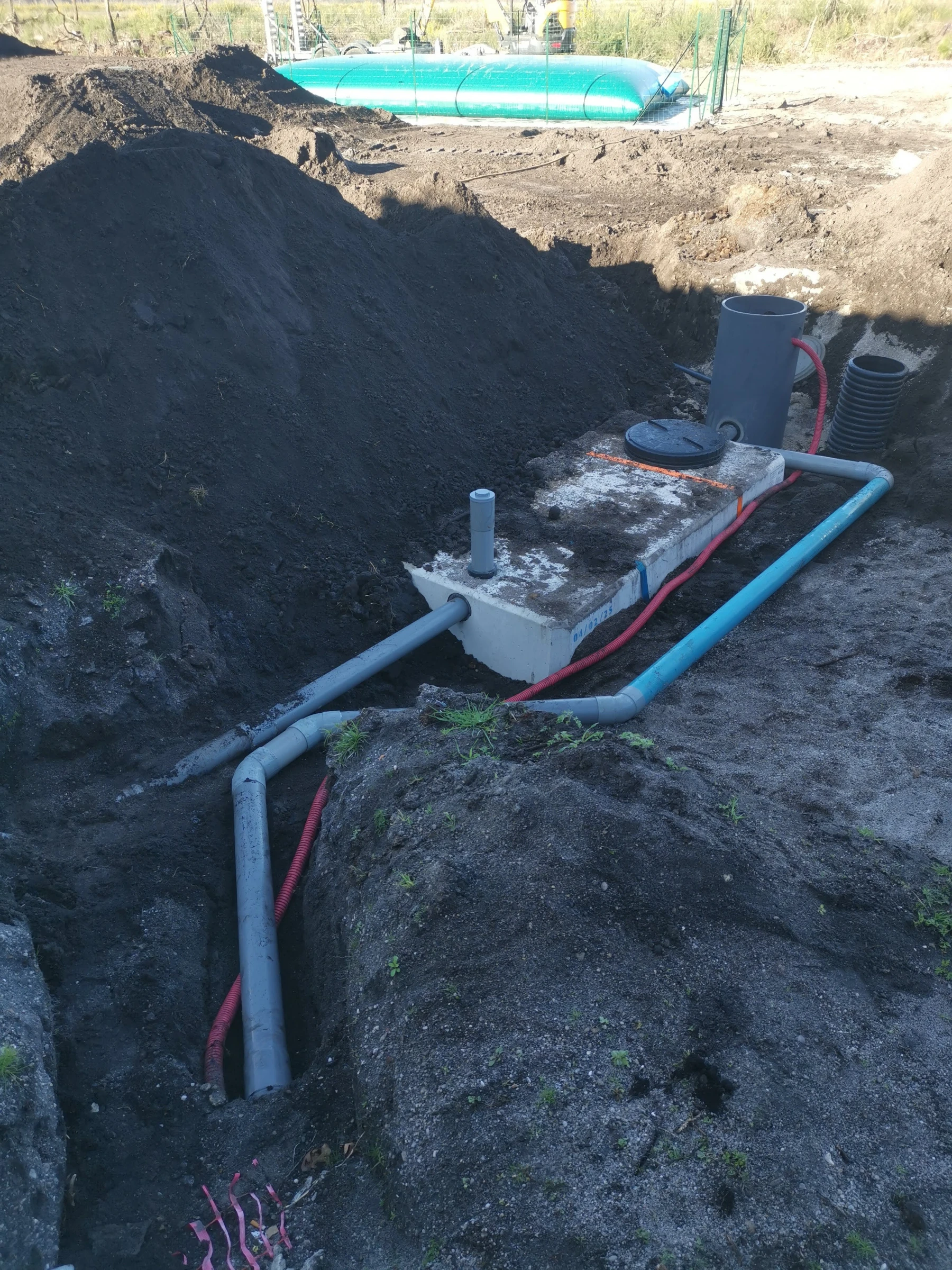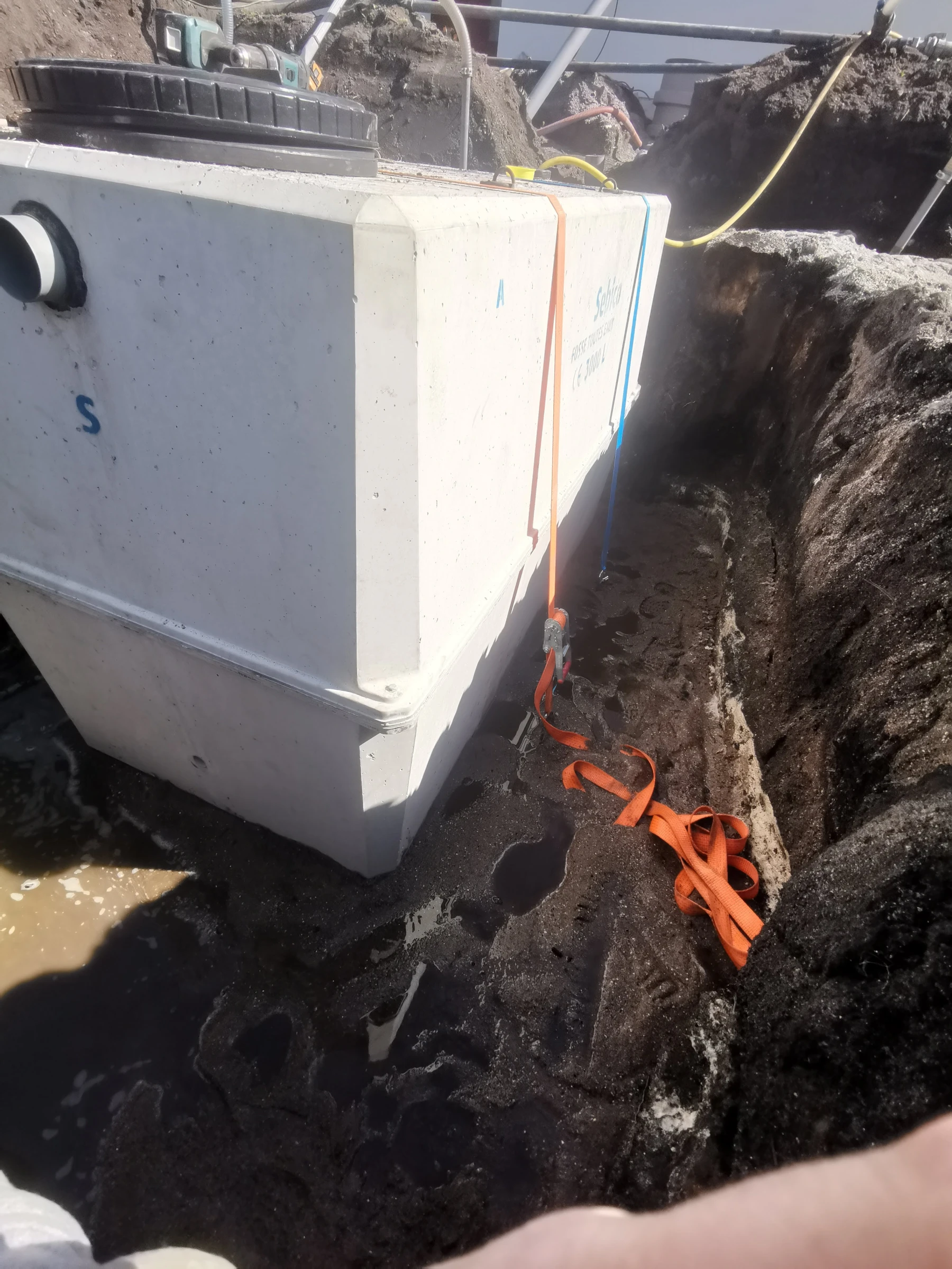 Nous avons dû, pour la pose de la fosse , réaliser un rabattement de nappe, car l'eau de la nappe était trop haute par rapport au terrain.