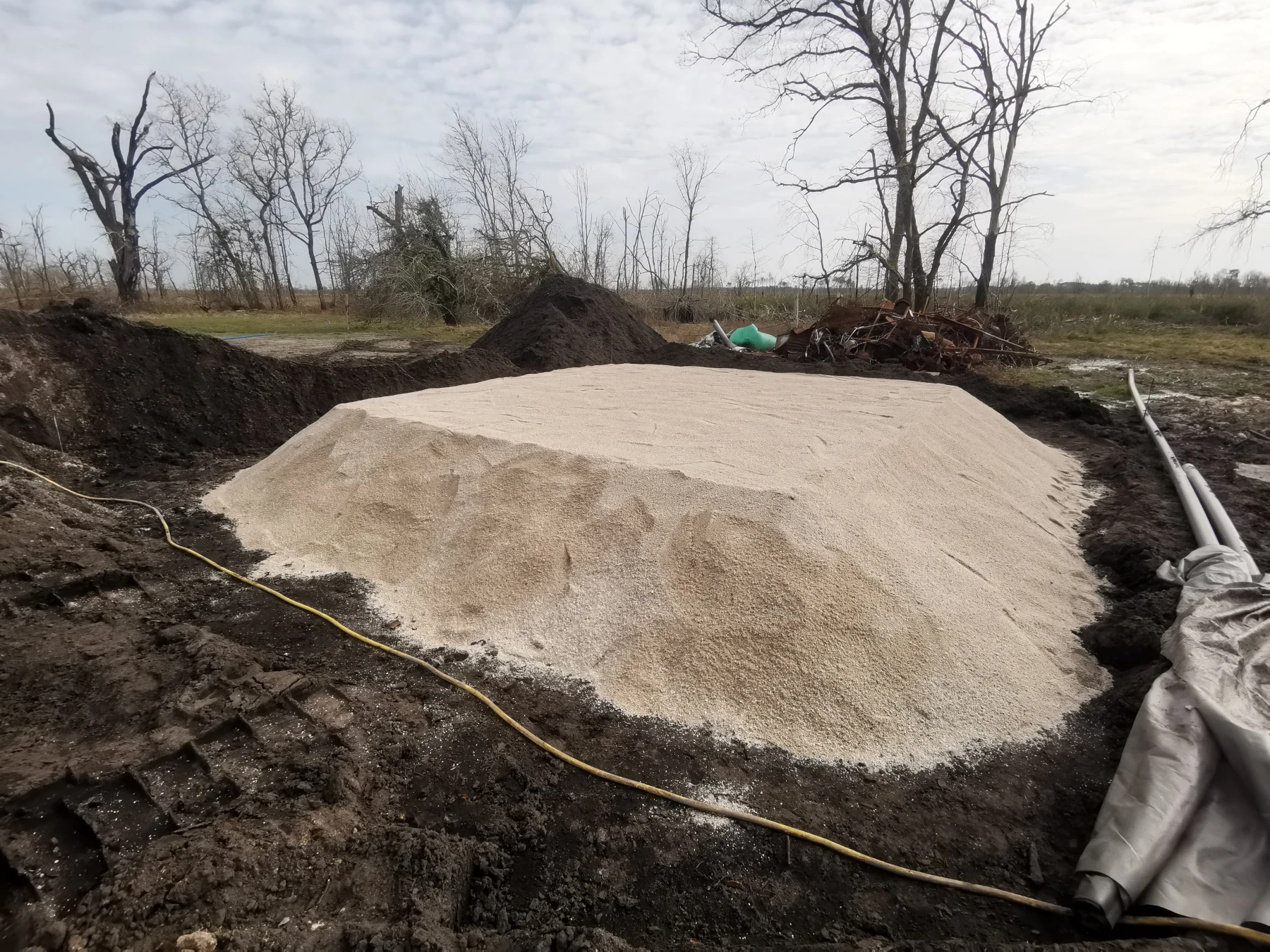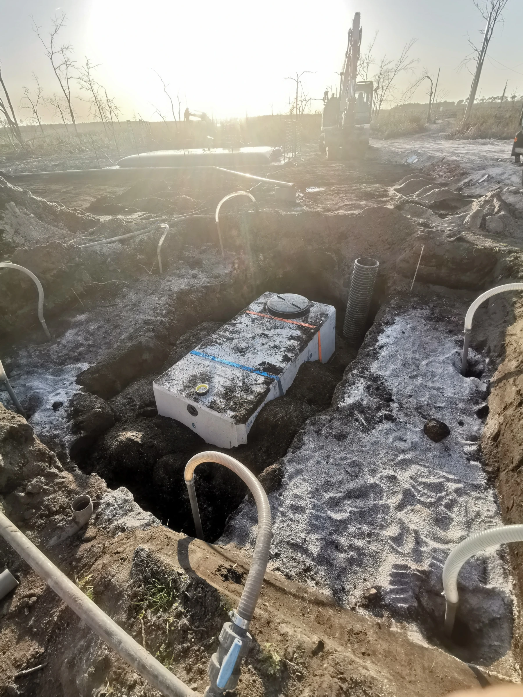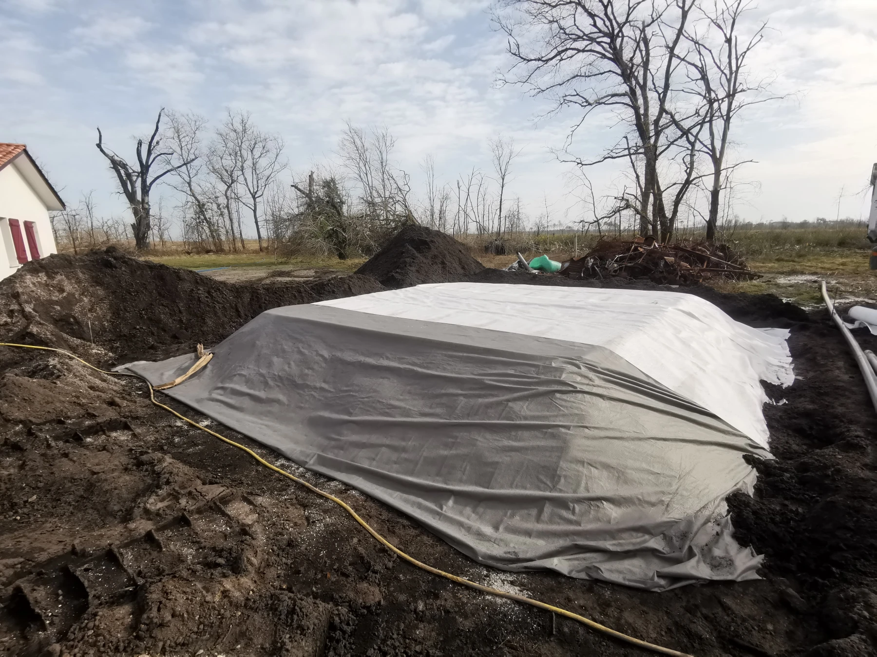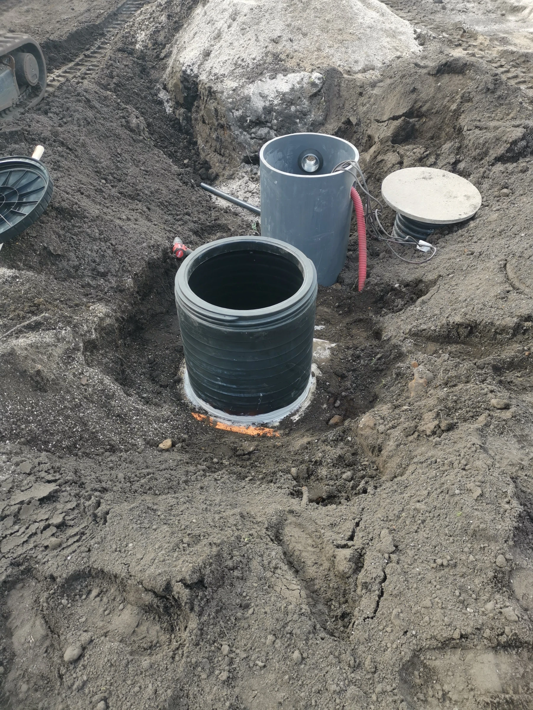 Nous avons dû, pour la pose de la fosse , réaliser un rabattement de nappe, car l'eau de la nappe était trop haute par rapport au terrain.